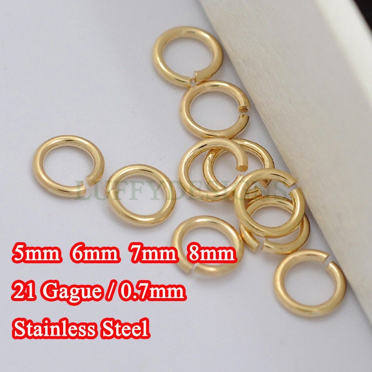 100pcs 0.7mm /21 Gauge, 18K Gold plated 304 Stainless Steel, 4mm /5mm /6mm /7mm /8mm Open Jump Rings, Link Connector, Split gold jump rings