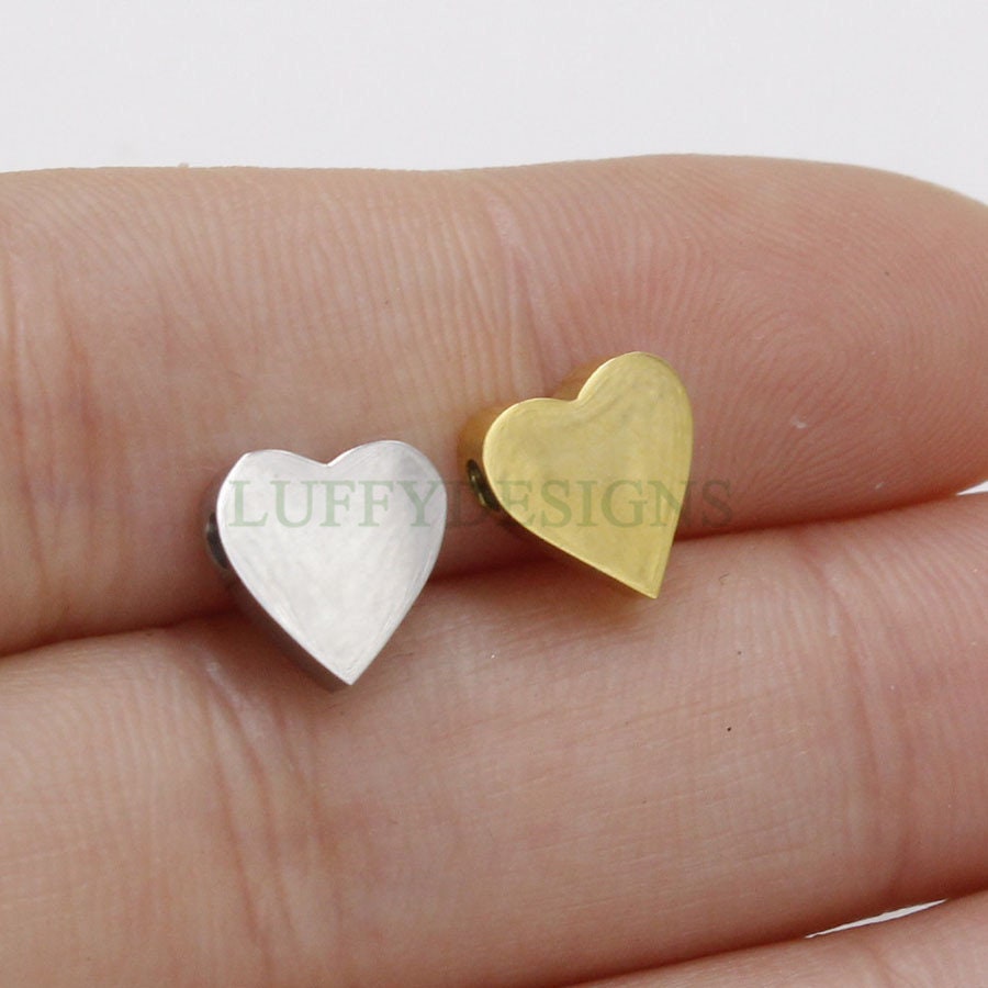 10pcs 3D Heart Charms 8x3mm, Gold /Rose Gold Stainless Steel Heart, Heart Beads Pendant, Tiny Heart Findings, Jewelry Making Supplies