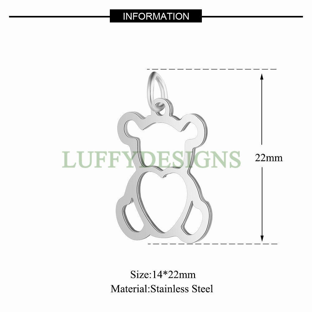 10pcs Bear Charms, Cute Teddy Bear Pendant, Stainless Steel Animal Pendant, Jewelry Making Supplies, Charm Jewelry, DIY Jewelry Accessory