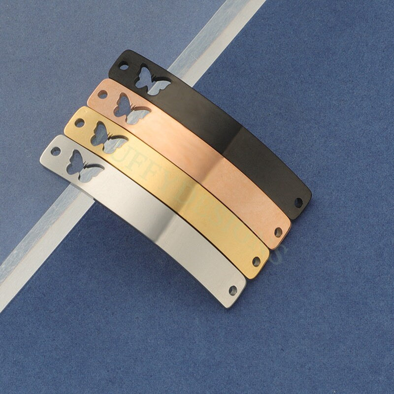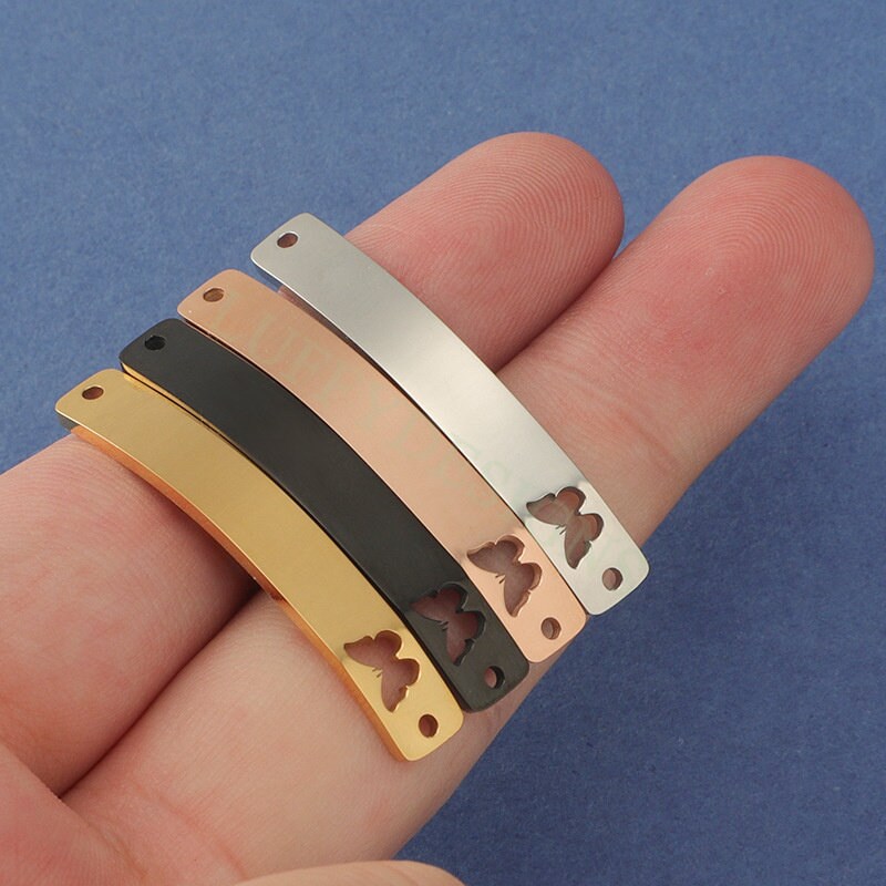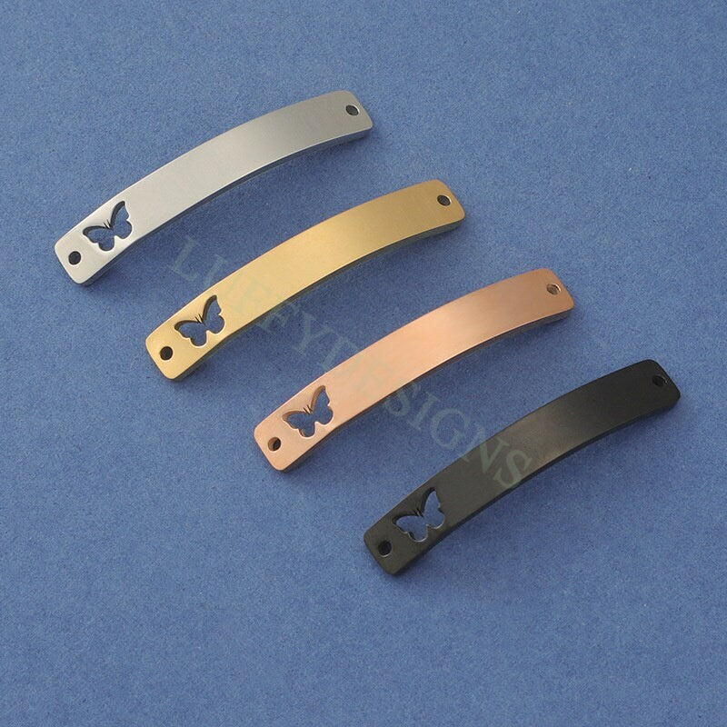 10pcs Butterfly Bar Charms 39x6mm, Bar Bracelet Supplies, Gold Steel Blanks, Stamping Bar Supplies, DIY Engraving Supplies, Engraving Supply