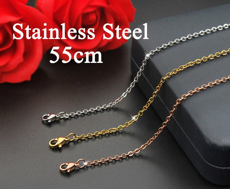 The chain use 18K Gold/Rose Gold plating, which makes for a long-lasting finish and the tarnish-resistance.