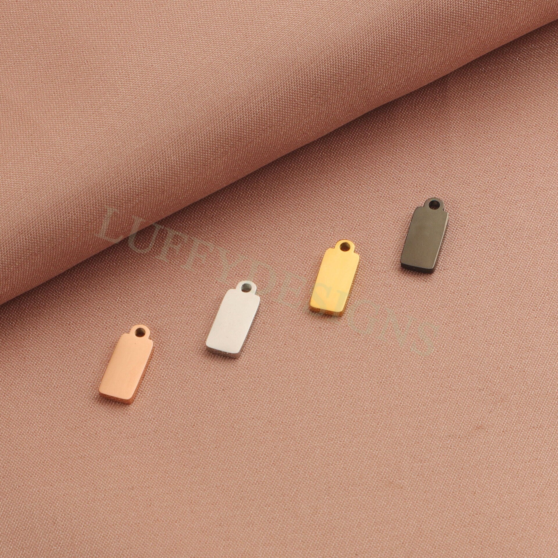 10pcs Gold Rectangle Charm Pendant 5x12mm, Rectangle Pendant Blank, DIY Engraving Supplies, Ready to Engrave, Gold plated Stainless Steel