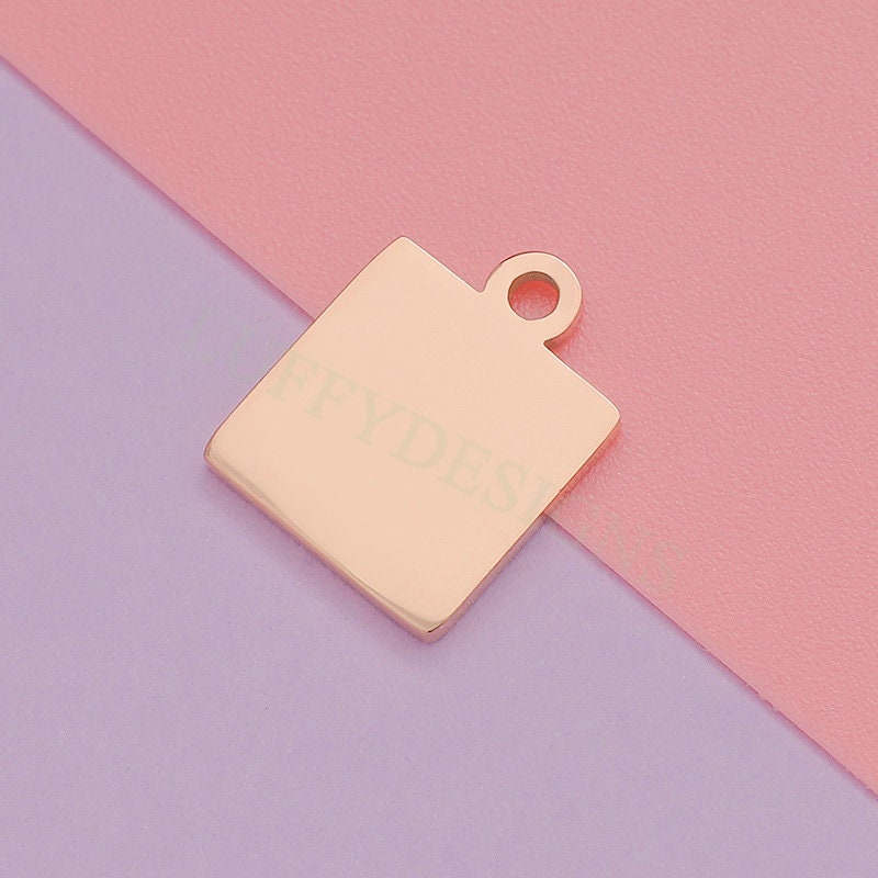 10pcs Gold Square Charm 10/18mm, Square Pendant, Square Stamping Blank, DIY Engraving Supplies, Mirror Polished, Gold plated Stainless Steel
