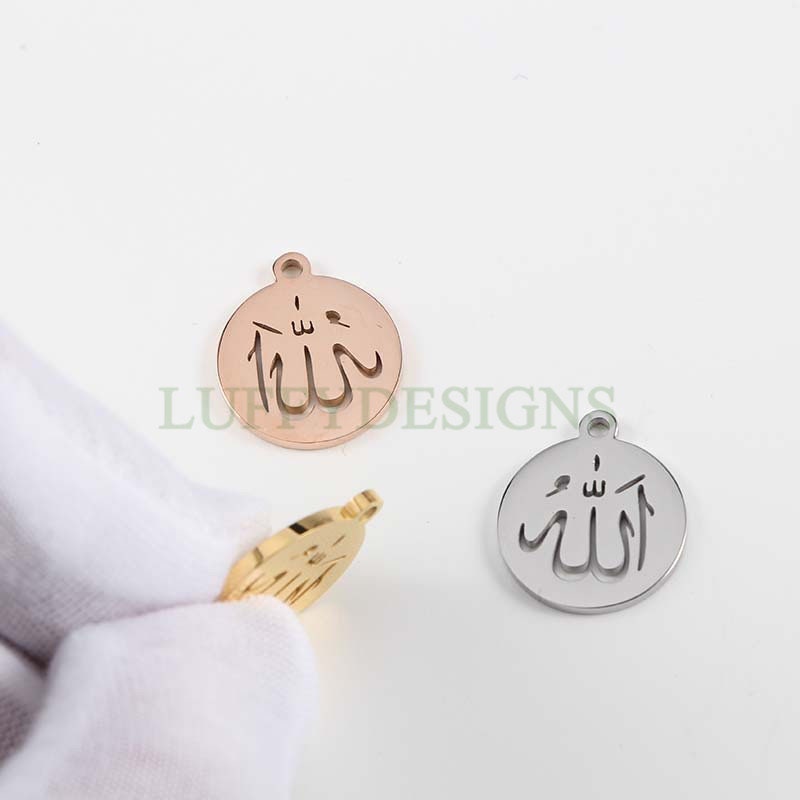 10pcs Islamic ALLAH الله and Mohammed محمد PBUH, Gold Islamic Charm Pendant, Religion Charm, Mirror Polished Staninless Steel Findings