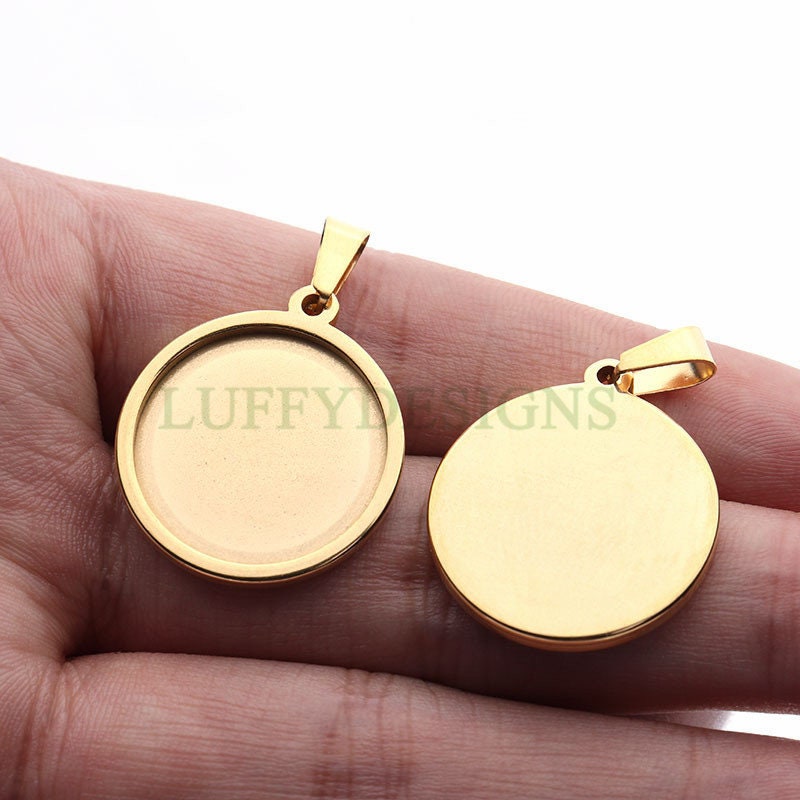 10pcs Round Bezel Tray Blanks, Cabochon Settings, Blank Bezel Base Settings, 18K Gold plated Stainless steel, Pendant Base Tray 20-40mm