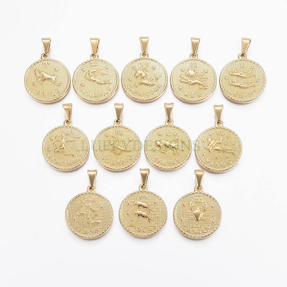 12pcs/5pcs Zodiac Constellation Charms, Zodiac Symbol, Horoscope Charm, 304 Stainless Steel, Astrological Zodiac Signs, Gold Zodiac Pendant