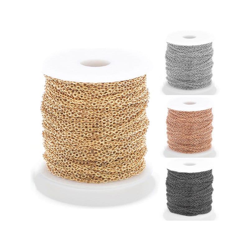 16Ft /33Ft Gold Stainless Steel Chains, Flat oval Links -Gold Cross Chain, Rose Gold chain, Black Chain -1.1mm / 1.5mm / 2.0mm / 2.5mm