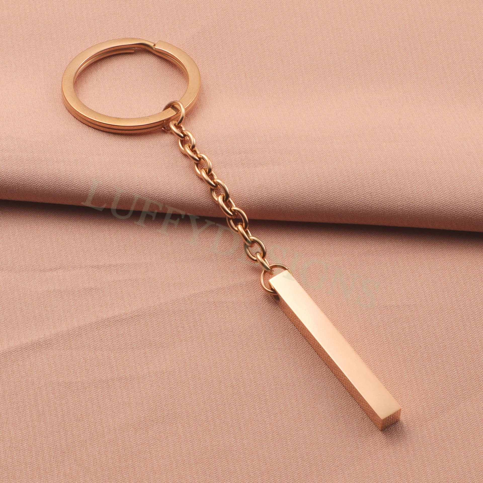 5pcs Blank bar keychain, bar keyring supplies, Gold stainless steel blanks, Ready Stamping bar keychain, Engraving Keychain with Chains