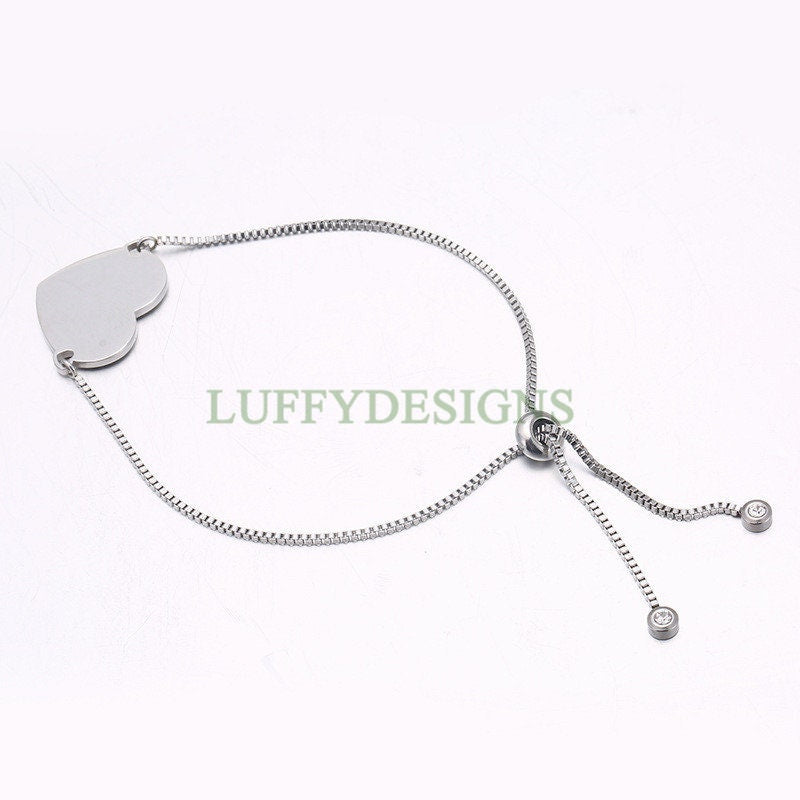 5PCS Finished Slide Bracelet, Sliding Adjustable Bracelet, Gold Heart Bracelet blanks, Hand Stamping Blanks, Custom Engraving Supplies