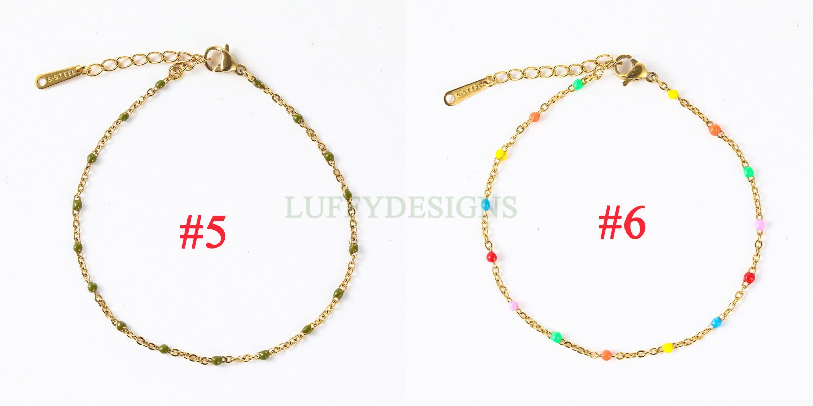 6pcs Enamel Satellite Bracelet, Gold plated Stainless Steel, Unfinished Gold Rosary Bracelet, Rainbow Epoxy Ball Bracelet for Jewelry Making