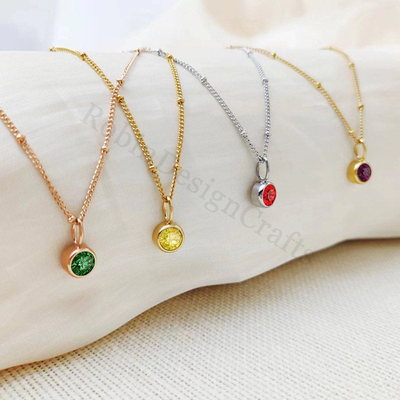 Dainty Birthstone Necklace, Personalized Birthstone Jewelry for Everyday Wear, Custom Birthday Gifts, Family Birthstone Necklace Gift
