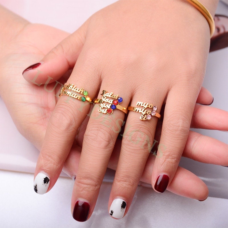 Personalized Birthstone Ring, Custom Name Ring, Gold Couples Name Ring, Family Birthstone Ring, Gemstone Ring for Mom, Mother's Day Gift