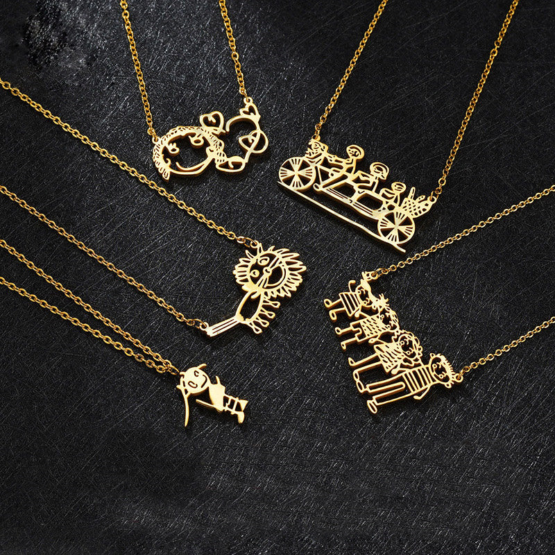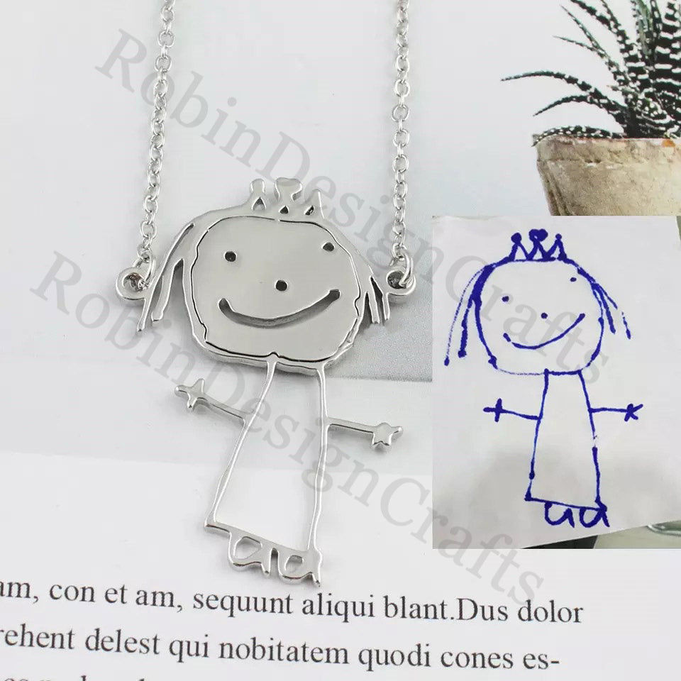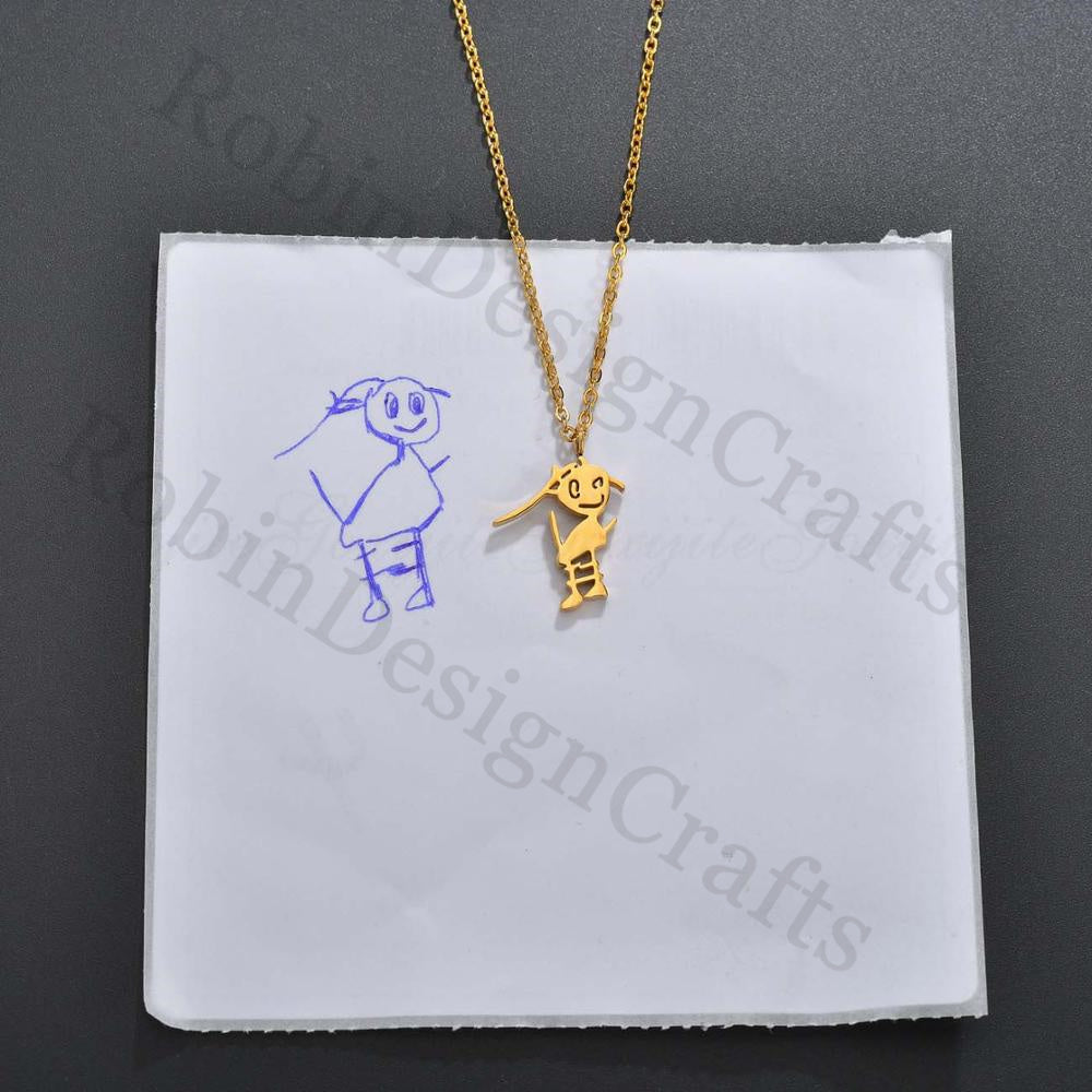 Personalized Graffiti Necklace, Kids Drawing Necklace, Children Artwork Jewelry, Custom Children's Gift, Personalized Children's Mom Gift