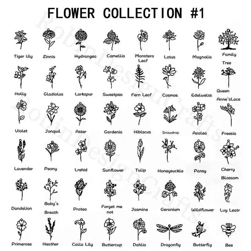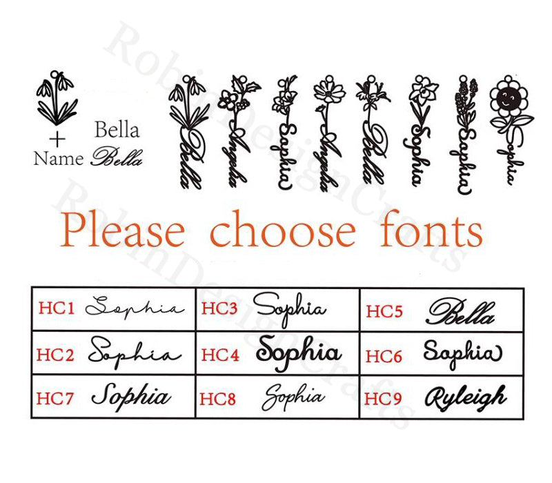 Please provide the flower from our flower list, and then leave your name and FONT (Default font HC1).