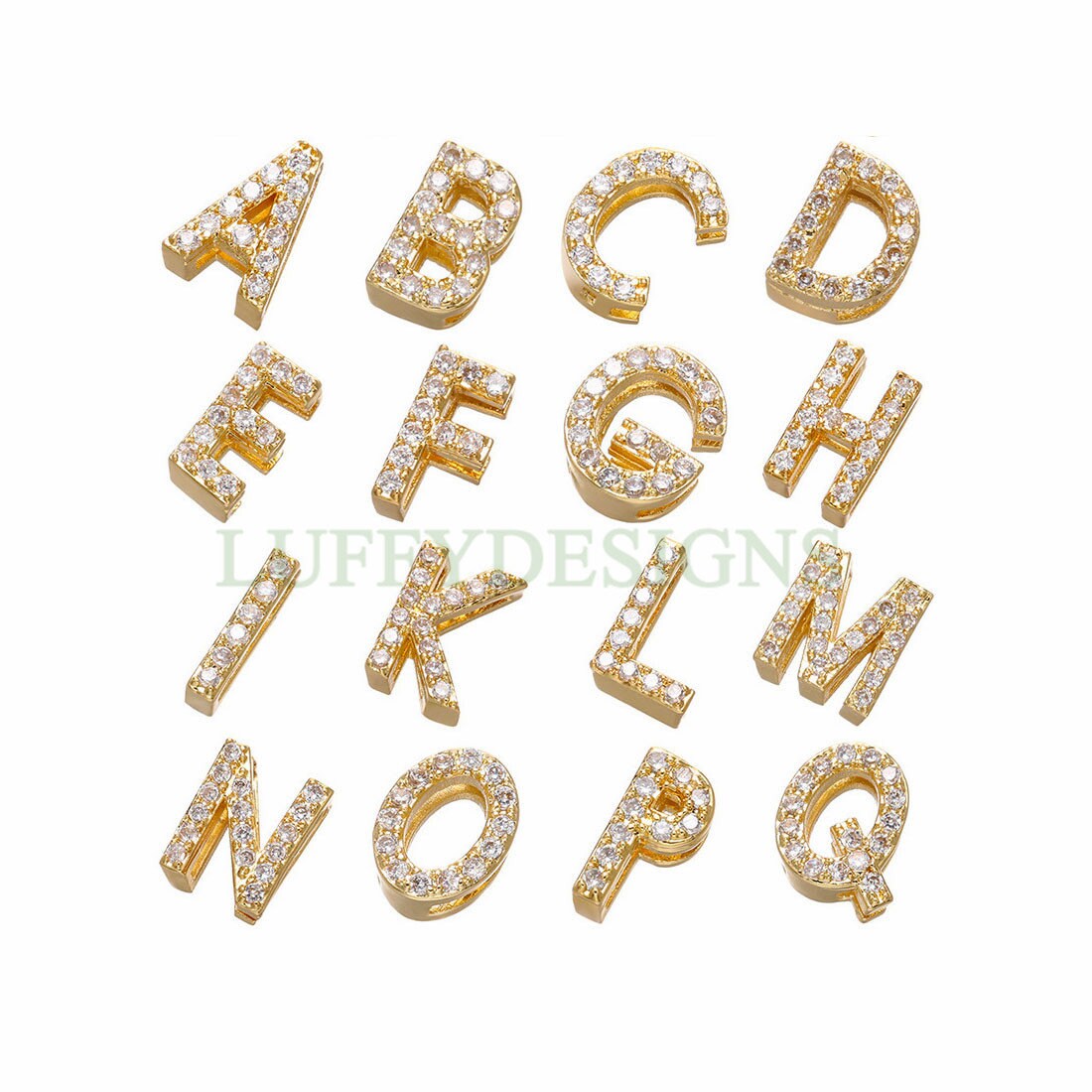 Uppercase Letter Charm, Alphabet Charm, Gold Letter Bead With Crystal Zircon, 26 Letters CZ Initial Charms, Gold Initial Bead Pendant