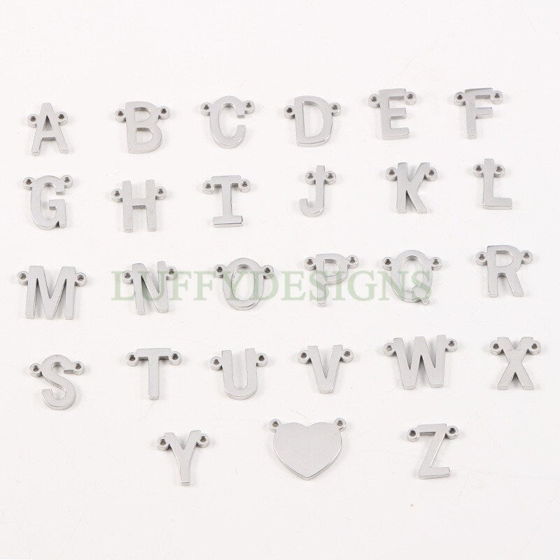 Uppercase Letter Charm, Alphabet Charm, Gold Letter Pendant, 26 Letters Initial Charms, Gold Plated Stainless Steel, Double Loops Letter