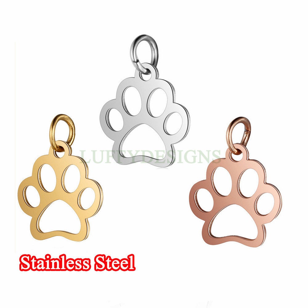 WHOLESALE 10pcs Paw Print of Dog Charms 15x13mm, Gold /Rose Gold Stainless Steel, Metal Charms, Jewelry Making Supplies, Hollow Findings